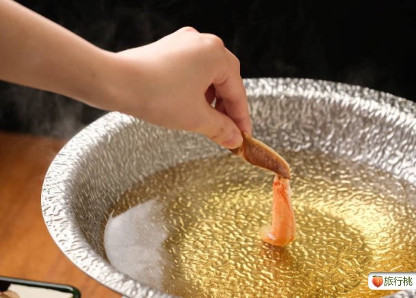 好吃的秘诀在于涮螃蟹的时间,时间会影响到螃蟹的美味程度。店长荒井先生表示松叶蟹的话大约涮20~30秒,帝王蟹涮40~60秒,当蟹肉整体变得膨胀饱满时就是享用的最佳时机。