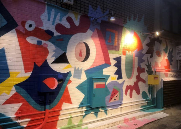 在反方向也有可爱的墙壁涂鸦。